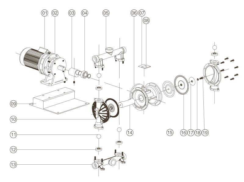 本隔膜泵的主要部件是隔膜,正確選用隔膜可以達到事半功倍 的目的,用戶訂貨時須注明輸送介質的性質,以便配備不同隔膜, 一般隔膜有下列幾種: